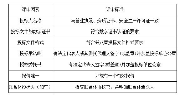 对招标文件要求的工期、质量、投标保证金、履约担保、投标有效期、暂定价、不可竞争费用等实质性要求的响应性进行评审。