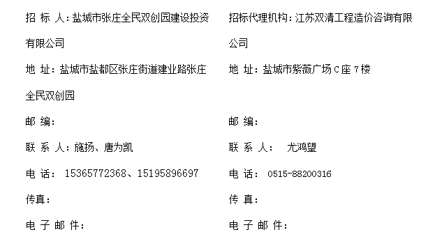 1.本次招标项目的建设地点:盐城市盐都区张庄街道建业路张庄全民双创园
